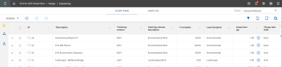 In the Engineering module, engineering deliverables are created and tracked as scope items.