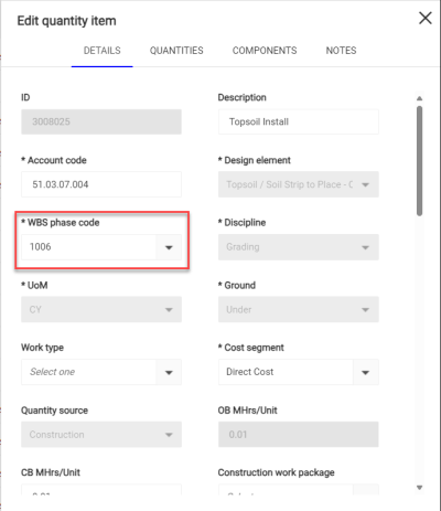 WBS phase codes assigned in Control allow you to reference CBS line items across InEight applications.