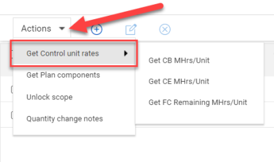 To update Design quantity items with current values from Control, open the Actions menu and select Get Control unit rates.