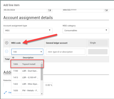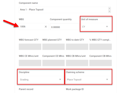 Note: Once you input a WBS code, the Unit of Measure, Discipline, and Claiming Scheme fields will populate automatically.