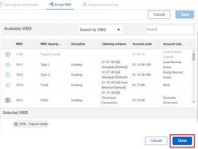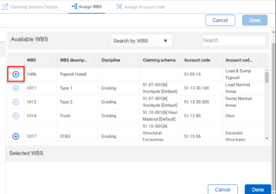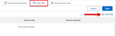 Click the Add icon to add a WBS phase code to this claiming scheme. You can add multiple WBS codes if needed.