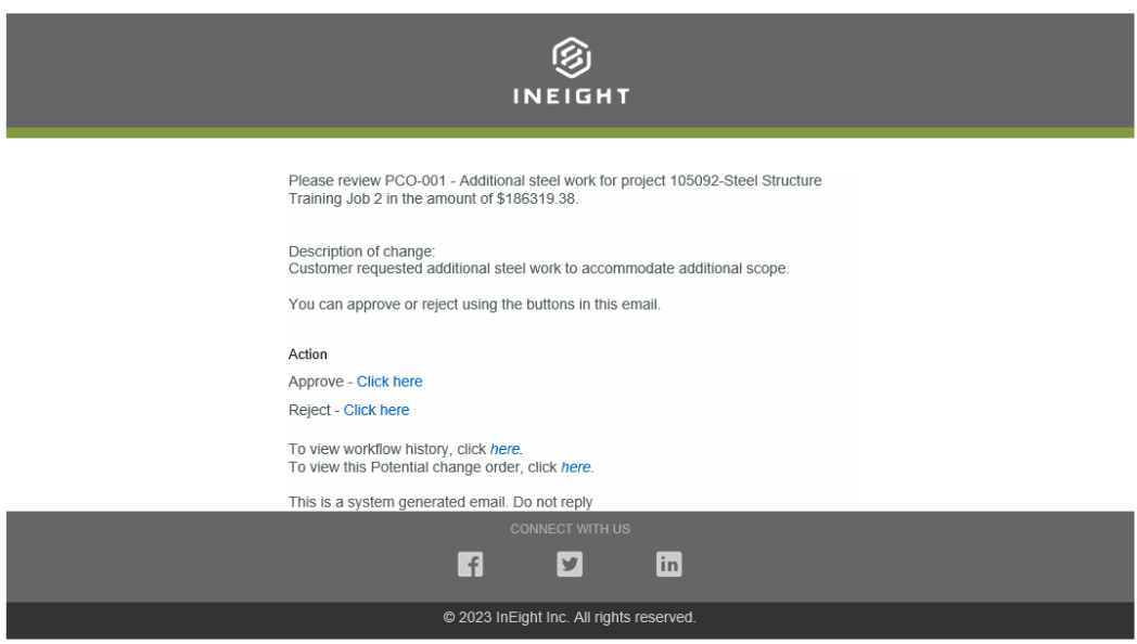 Other companies may not require a formal approval process at the PCO stage. This will depend on what makes the most sense according to your company’s standard operating procedures.