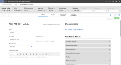 Detailed pricing and scheduling can be completed at the issue level, so PCOs are primarily used for communication, review, and approval.