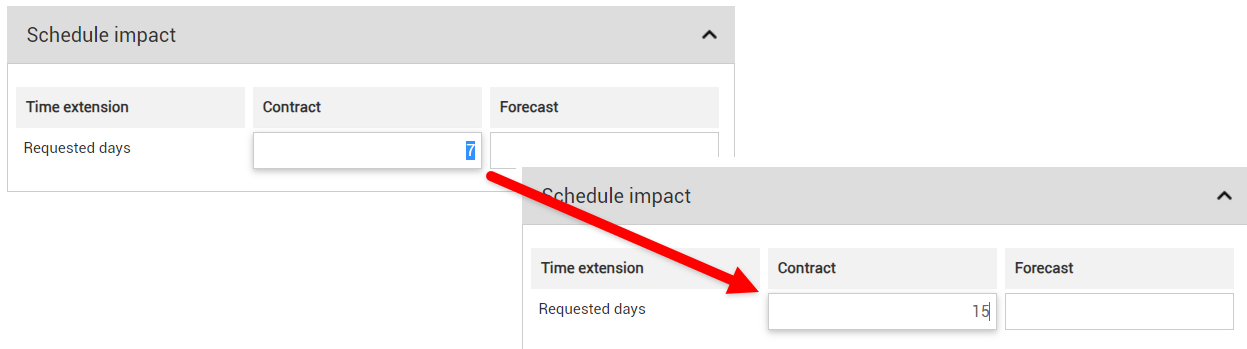 Forecast: This shows the number of days forecasted for this time extension. This reflects the number of days predicted for the work, regardless of the contract agreement.