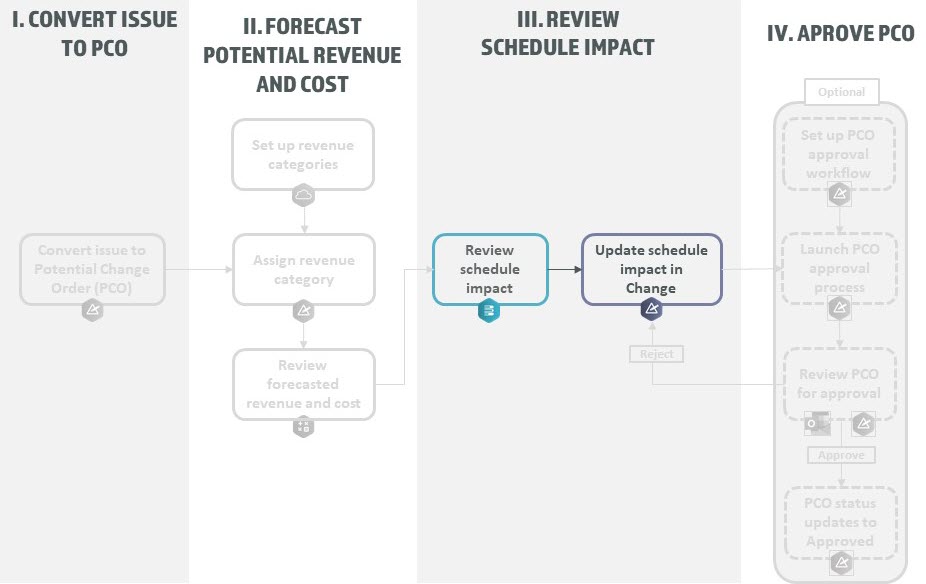 Now that the issue has progressed to a PCO, the superintendent reviews the what-if schedule that was sent to him from the scheduler and updates the estimated number of delay days for the change.
