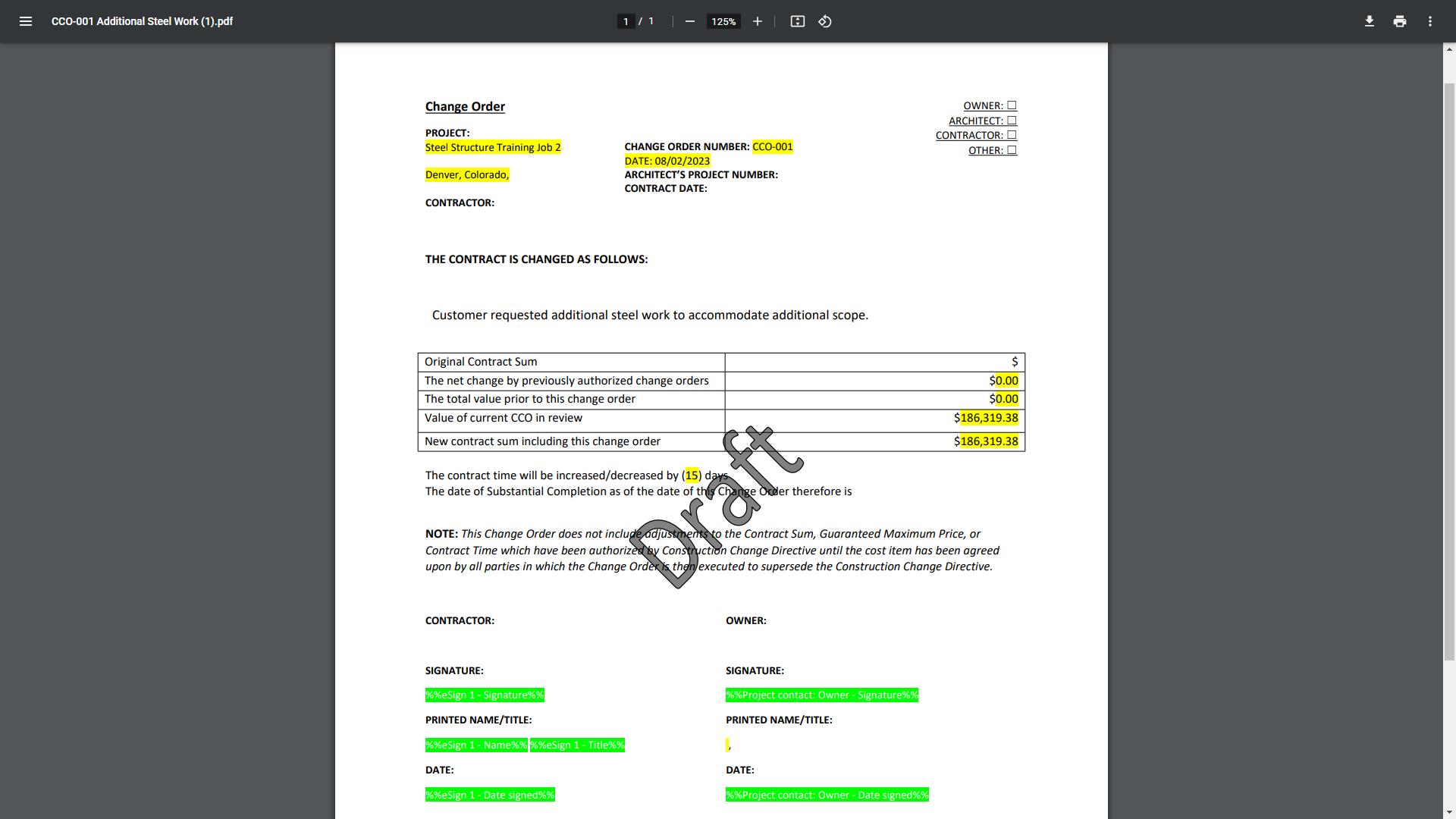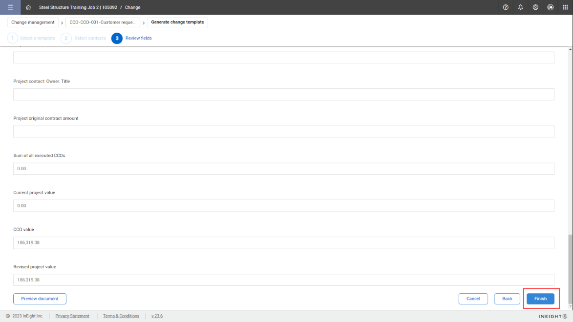 Within InEight Change, you can generate a Client Change Order (CCO) document for final review.