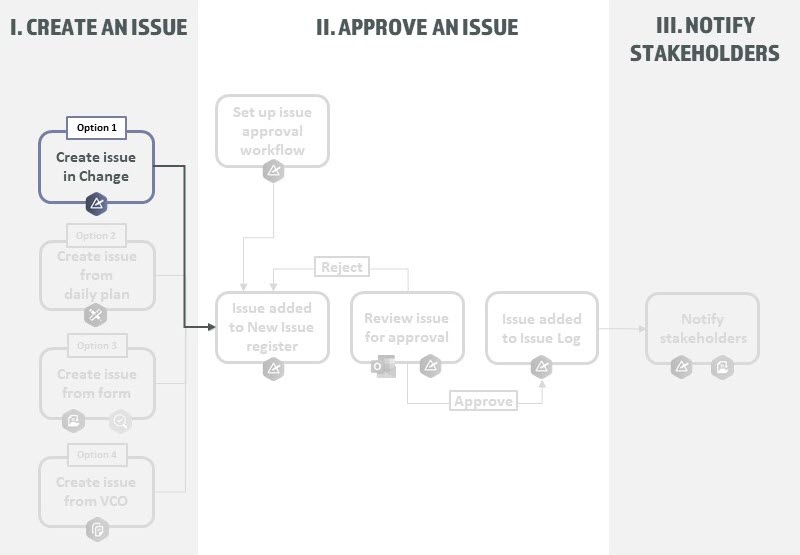 You can create issues directly in InEight Change as the first step in creating a Change Order.