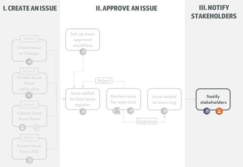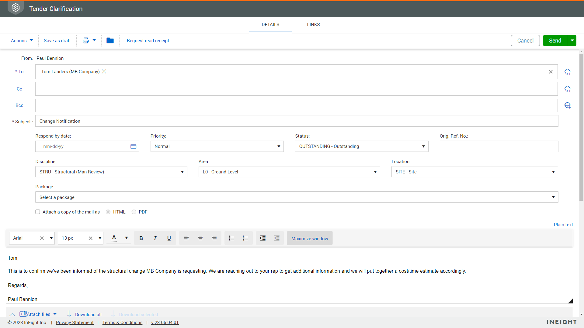 From within InEight Change you can send emails or forms to correspond with issue stakeholders.