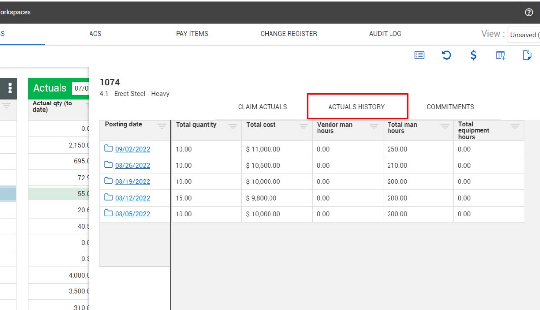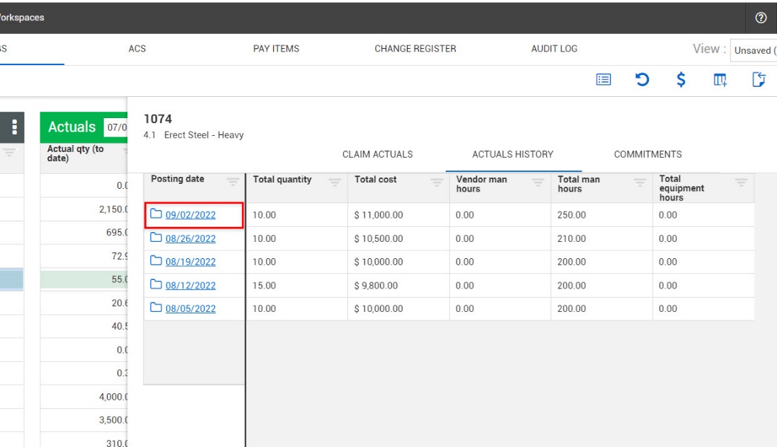 You may need to check actuals details to confirm what cost and man-hour entries have posted. In InEight Control, you can easily view details for each actuals entry such as posting date, cost category, and who submitted the entry.