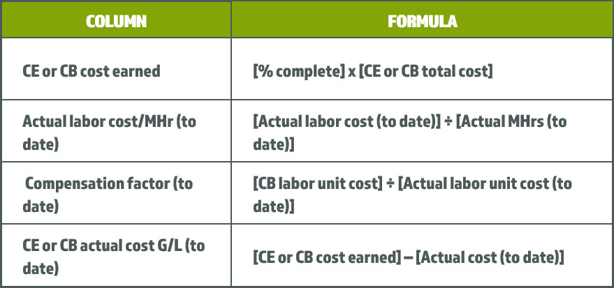Review the following earned-value formulas related to costs: