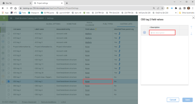 Set up cost item fields