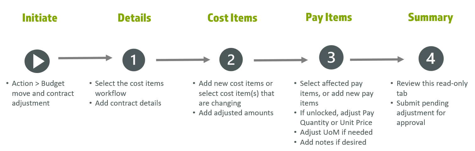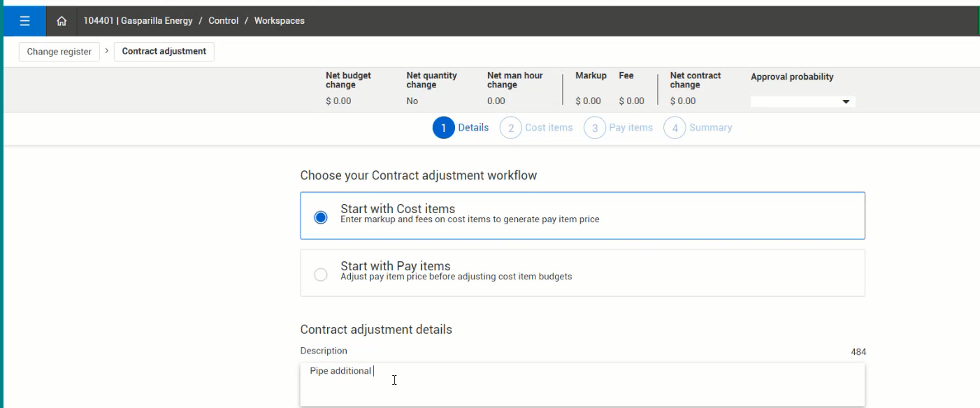A contract adjustment is necessary when you have a change order you need to add, so that you can see its effect on the budget. Doing so will affect your total price, either by providing an addition to your budget or by reducing it.