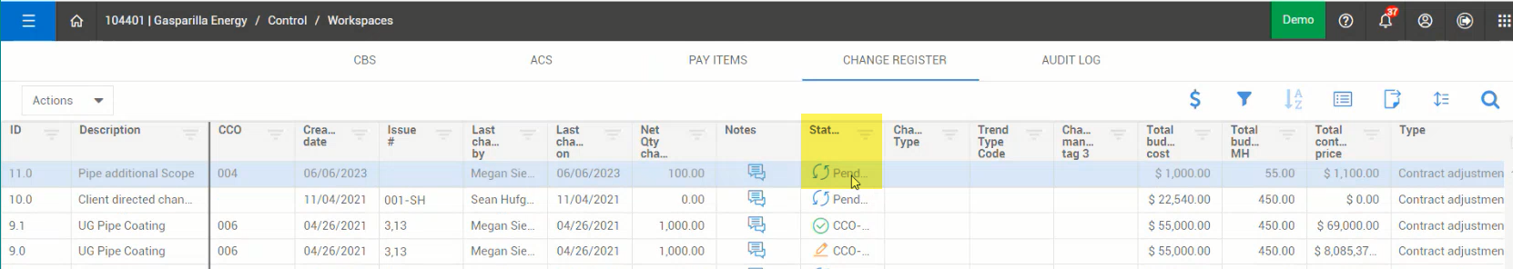 This topic is for organizations that use InEight Control exclusively for managing budget changes.