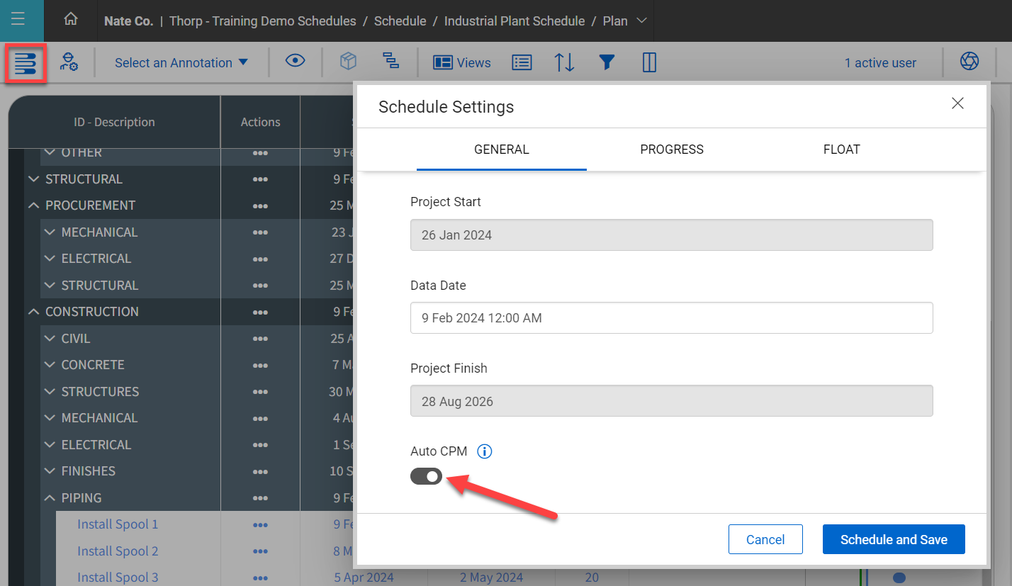 Access the following link for additional information on using the Auto CPM function within InEight Schedule: