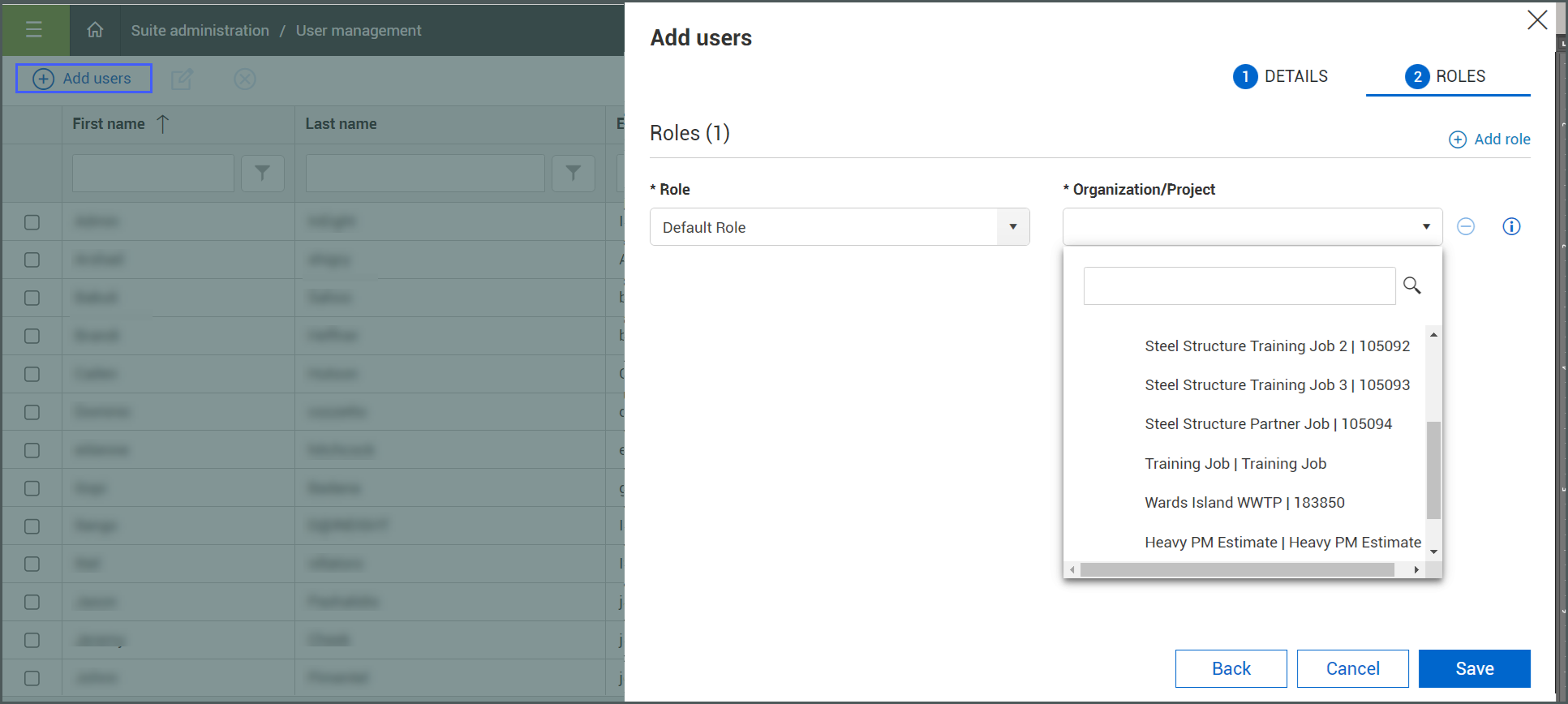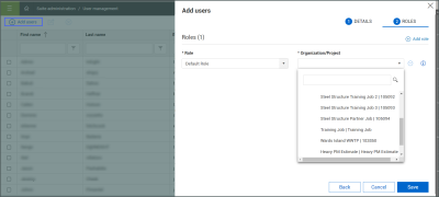 Like your employees, subcontractors can be added as individual users at the Core, organizational level. After adding their contact information, identify their role and the organization or projects to which they will have access.