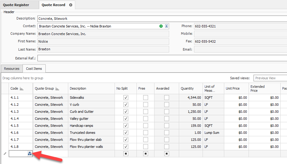 Header information and cost items populate automatically if you create from an RFQ record. Otherwise, you can add subcontractor information and cost items manually.
