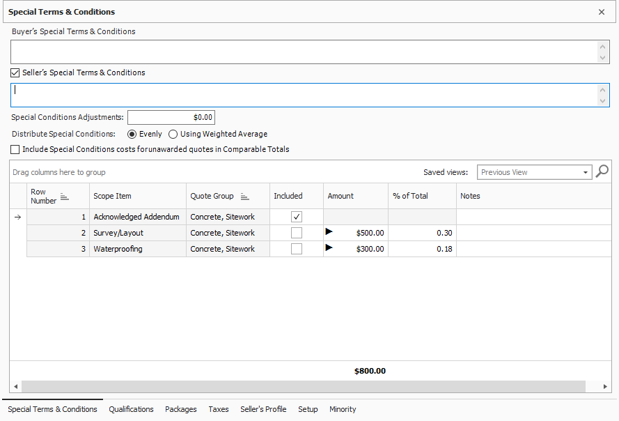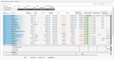 When you expand a quote group, you have several tools to help you select the best vendor for the work.
