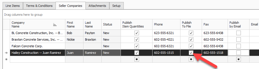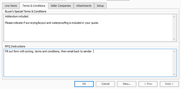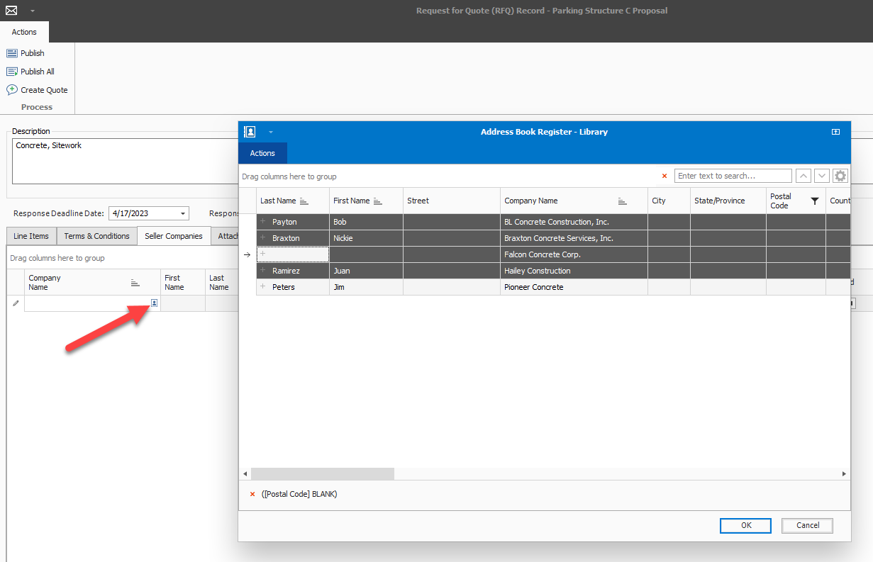 On the Seller Companies tab, select the subcontractors you want to send the RFQ to from the Address Book.