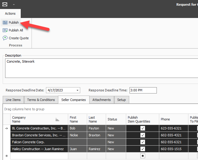 Select the sellers in the table below (use the CTRL key to select more than one), then click Publish.